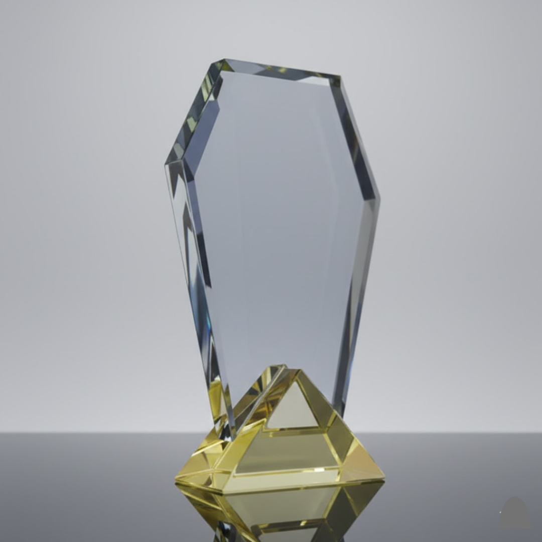 Clear Crystal Trophy with Engraving and Yellow Base